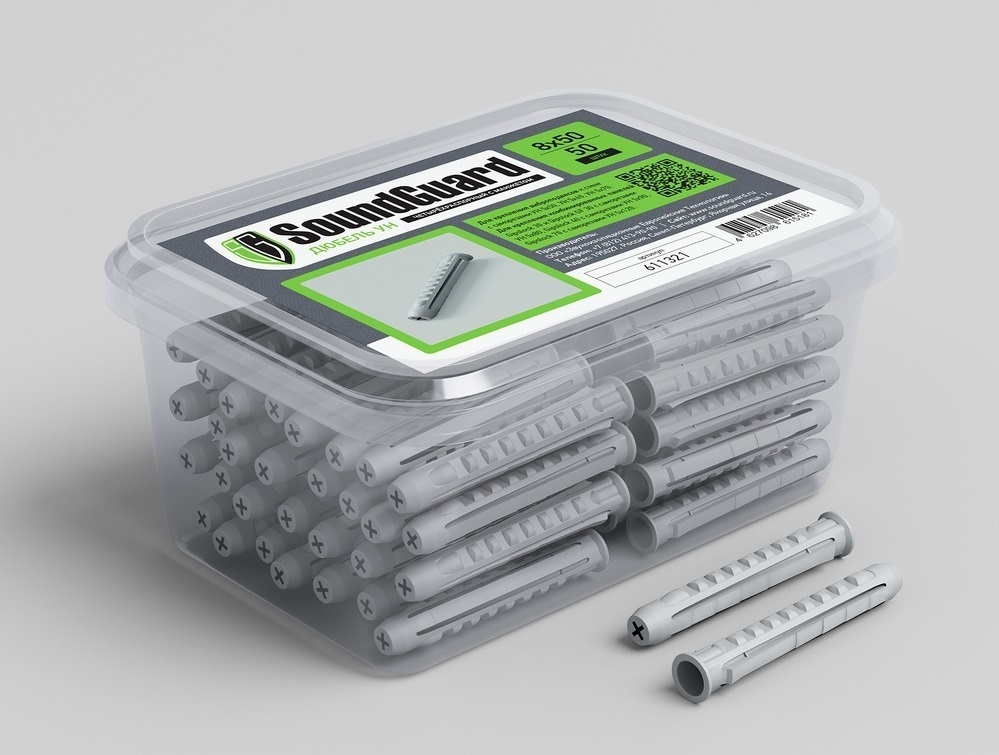 Дюбели SoundGuard УН 8х50 - распорный дюбель, который изготовлен из высококачественного полиамида (нейлона). Имеет увеличенный срок службы и улучшенные механические характеристики по сравнению с полипропиленовыми и полиэтиленовыми аналогами. Благодаря четырем распорным сегментам силы внутри отверстия распределены более равномерно, чем в случае использования 2- или 3-сегментных дюбелей.